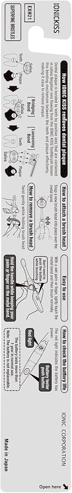 Harness the power of ionic cleaning with the IONIC KISS Ionic Toothbrush, featuring a negative ion generator and a 3-volt battery for a year-long performance that effectively reduces plaque buildup.