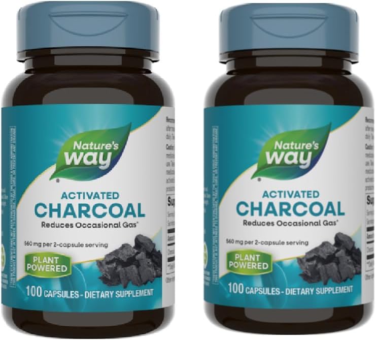 Nature's Way Activated Charcoal, Binds Unwanted Materials and Gas in the Digestive Tract*, 560 mg per 2-Capsule Serving, 100 Capsules (Packaging May Vary) - 2 Pack