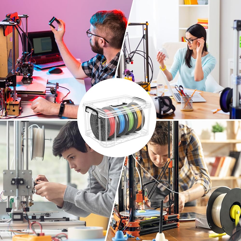 Quality Material: our 3D printing filament storage box is made of clear plastic; The transparency allows you to recognize the different types of filaments inside easily and choose the one you need