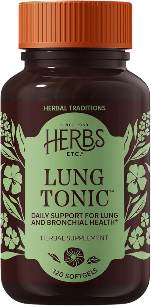 Herbs Etc. Lung Tonic - Lung Supplement for Bronchial Support - Healthy Breathing Support with Mullein, Horehound & Grindelia - 120 Softgels