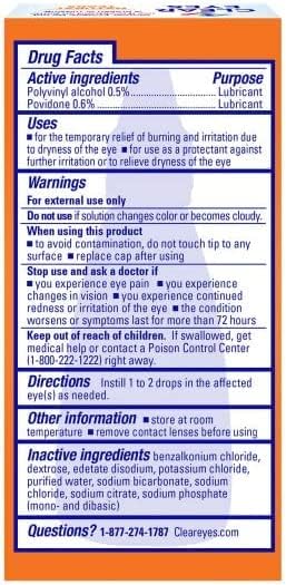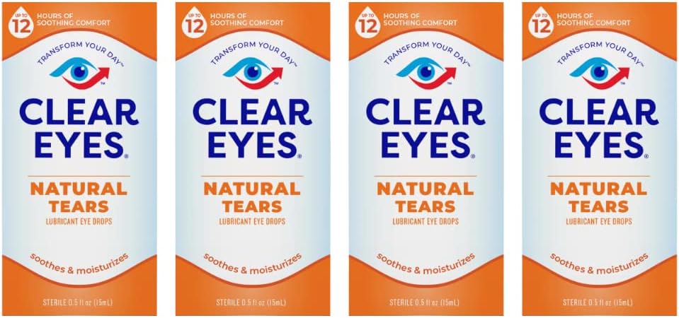 Clear Eyes Natural Tears Lubricant Eye Drops contain six ingredients found in natural tears