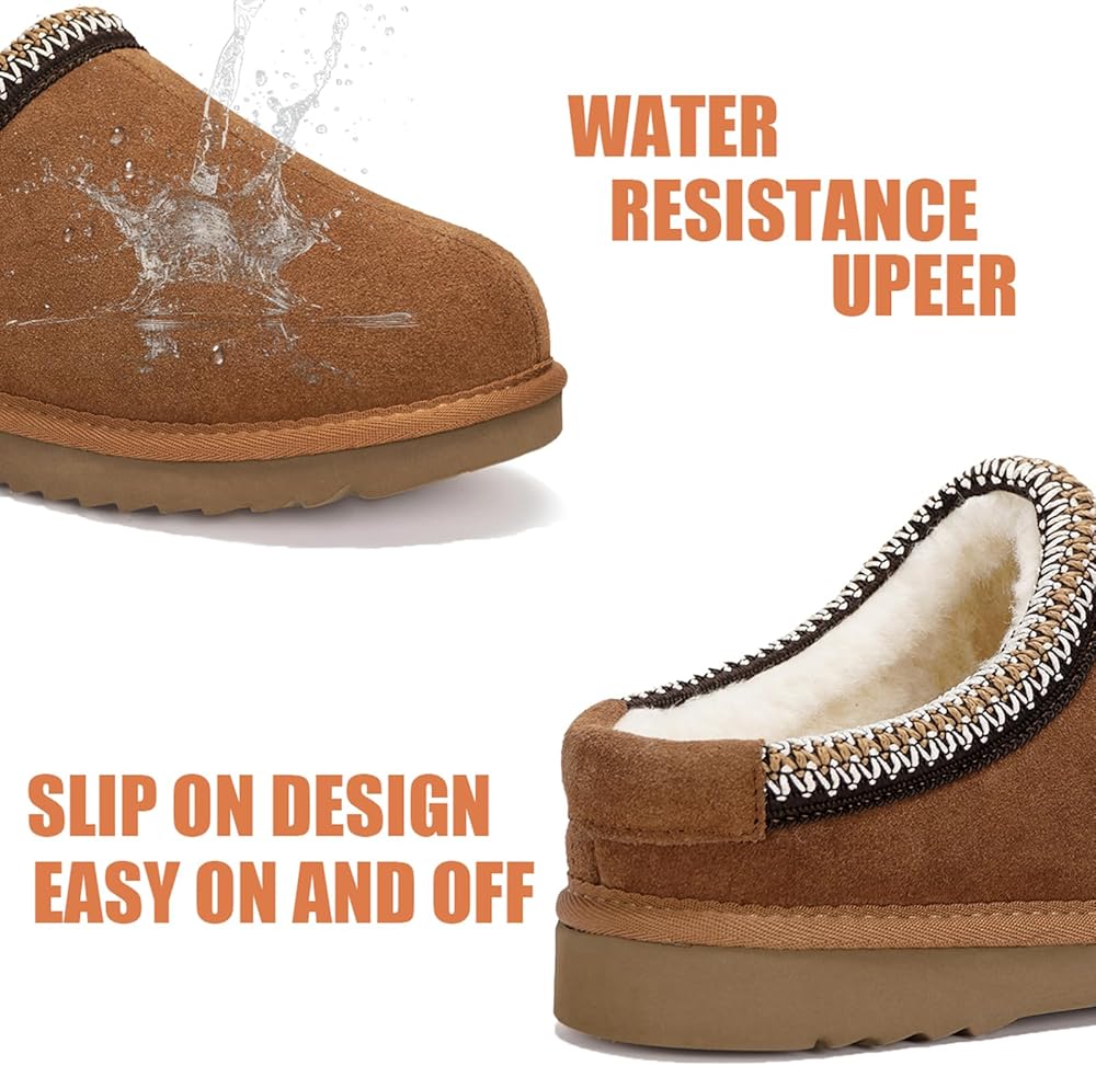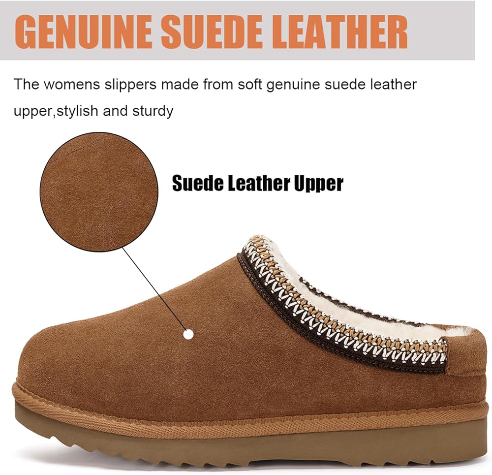 Premium Material: Womens suede slippers made from water resistant genuine suede leather upper and adorned with with reinforced stitching,stylish and sturdy,perfect for indoor and outdoor wear.Experience luxurious relaxation with our winter slippers