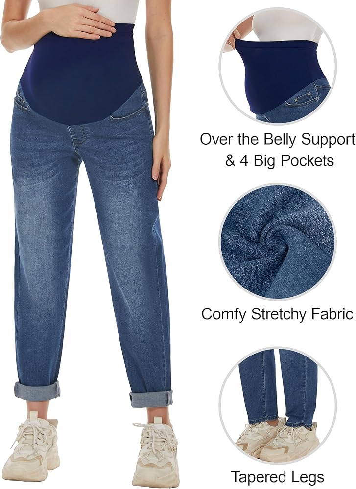 STRETCHY COMFORT: Made from premium, stretchy denim fabric, these maternity jeans maintain their shape while providing all-day comfort, no matter where or how you move.