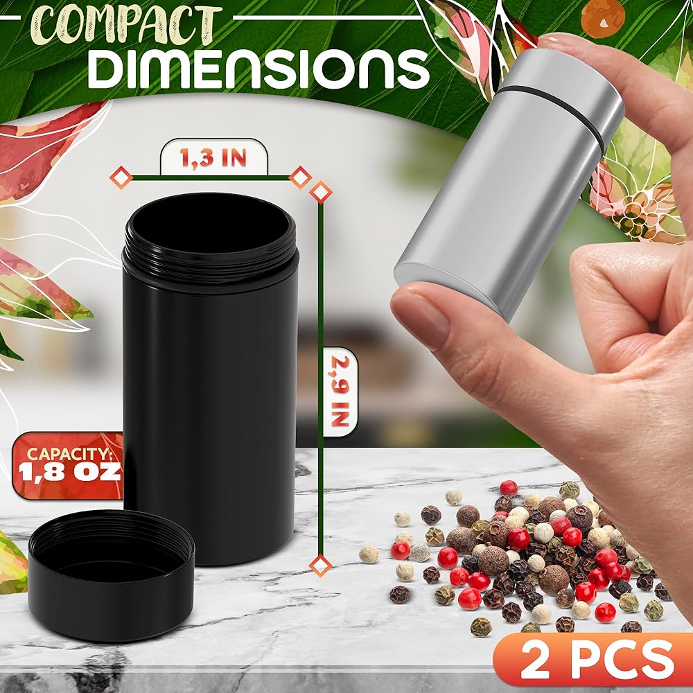 Portable Size: This compact, smell-proof container is easy to carry. It measures 3 inches tall with a 1.3-inch width and depth, and holds approximately 50 ml.