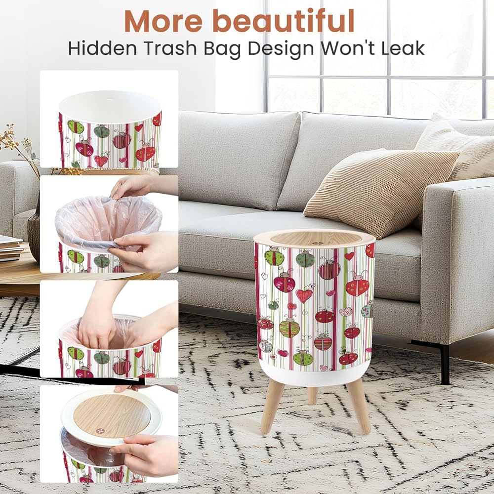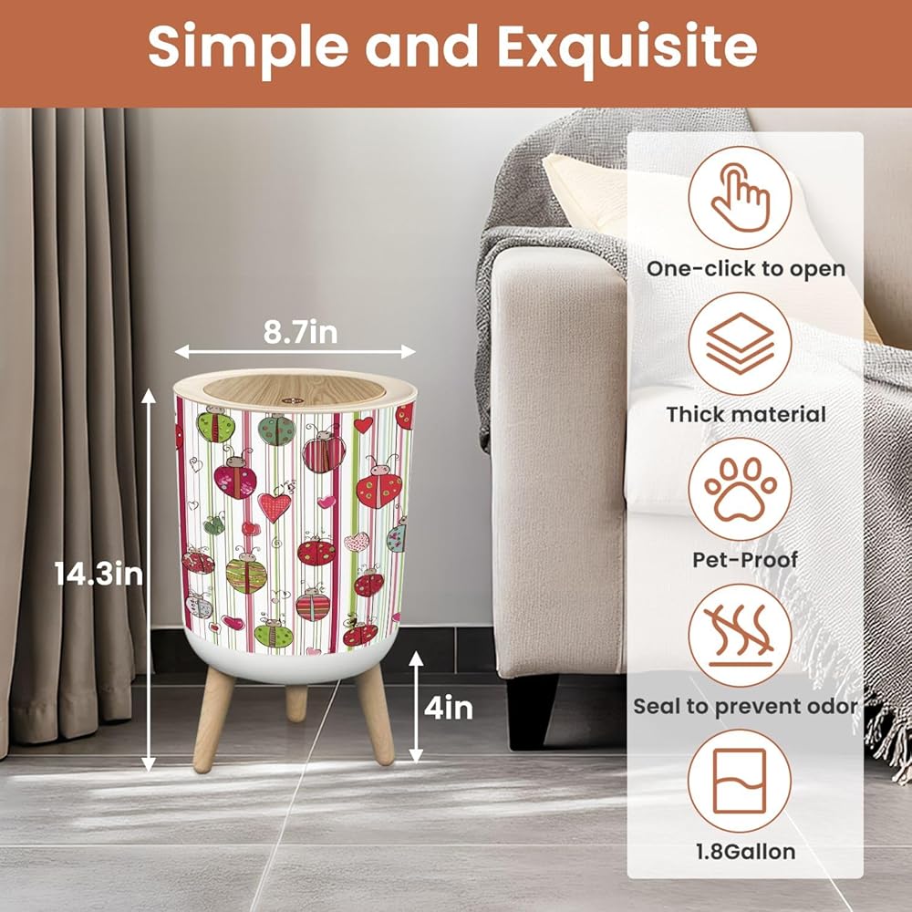 Bathroom Trash Can with Lid Colorful Ladybird Design for Children s Nursery Garbage Bin Waste Basket for Kitchen Office Bedroom Decoration Diaper Pail 1.8 Gallon
