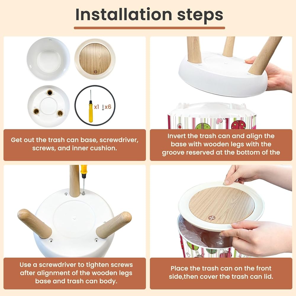 Our garbage can has a slim design and exquisite appearance.No need to bend down to throw garbage. The high three-legged trash can is designed to keep your space dry and tidy.Each cute trash can is equipped with a round interior frame that will keep the storage bags in place.