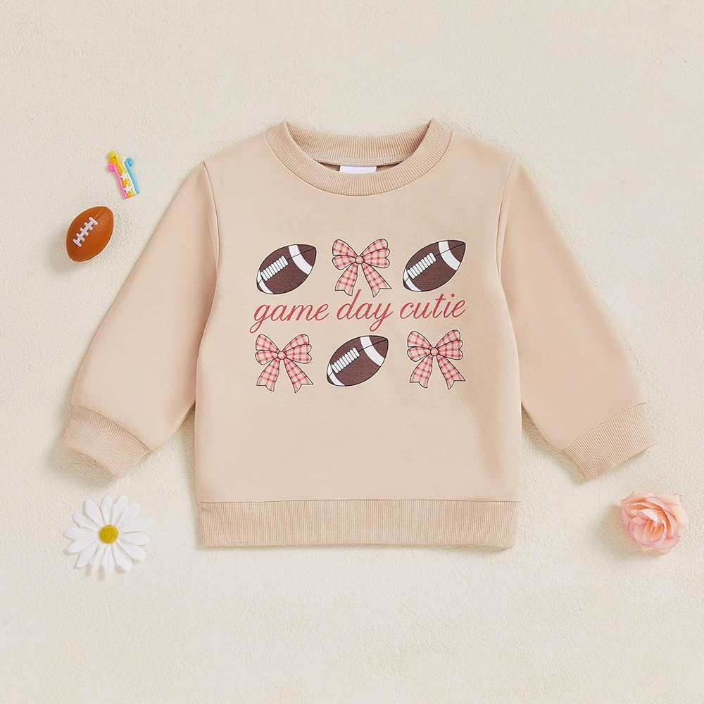 Baby Boys Girls Fall Football Sweatshirt Sunday Funday Rugby Theme Crew Neck Pullover For Infant Toddler Kids