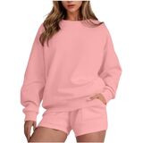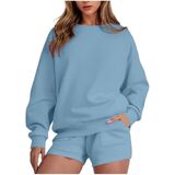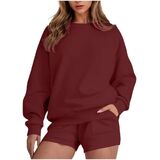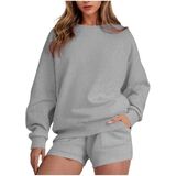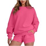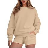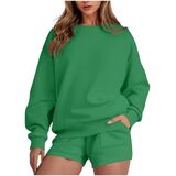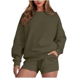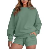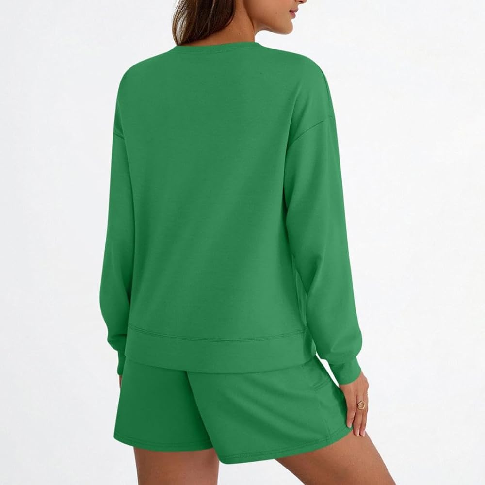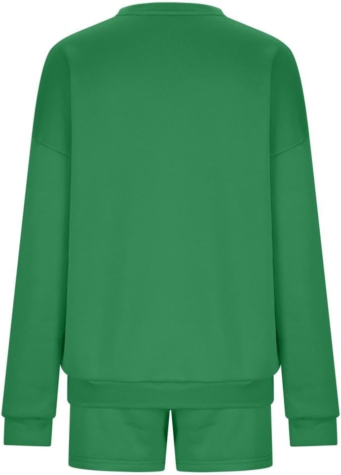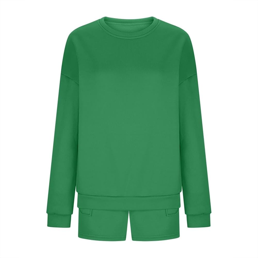 Feature: Fall fashion 2025 sweatsuit Sets, 2 piece lounge tracksuit, oversized crewneck sweatshirt, elastic high waisted shorts, long sleeve drop shoulder pullover, short jogger, solid color
