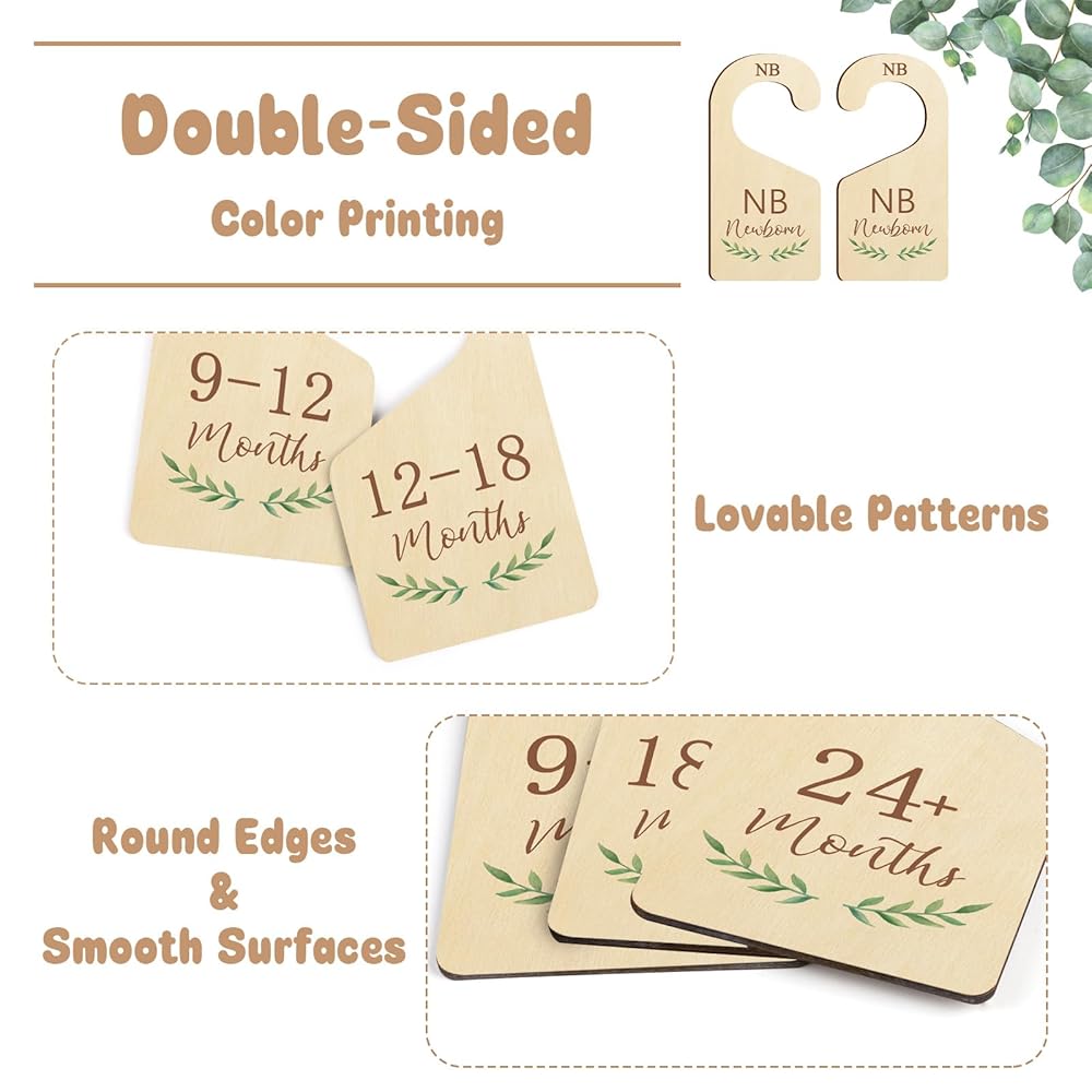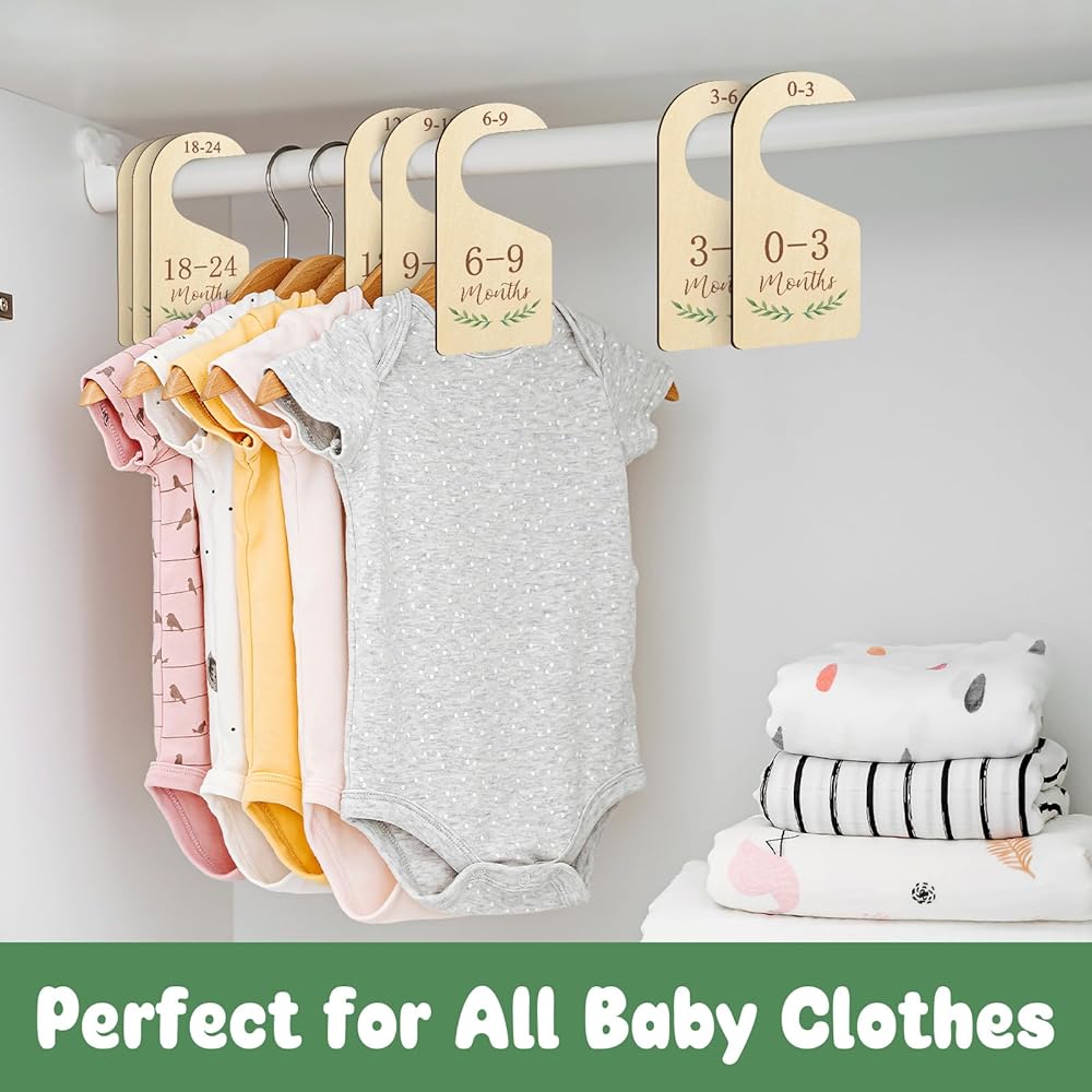 High Quality Product: Made of natural wood, these baby closet hangers dividers are eco-friendly and won't break or crack easily.The double-sided colorful print makes the baby clothes organizer a real eye-catcher in the closet.
