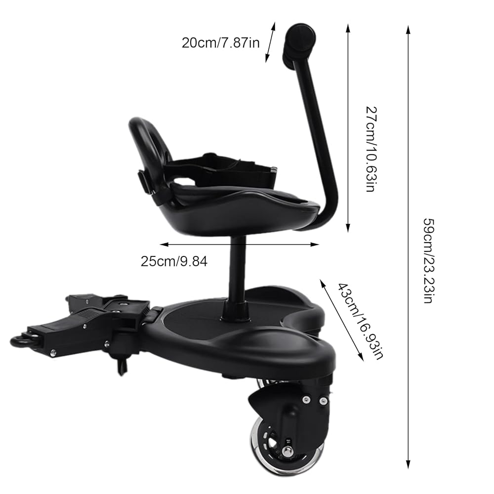 2 in 1 Universal Stroller Board with Saddle Seat and Standing Platform, Child Rider Stroller Attachment, Stroller Standing Board, Holds Children Up to 55lbs 2 to 6 Years