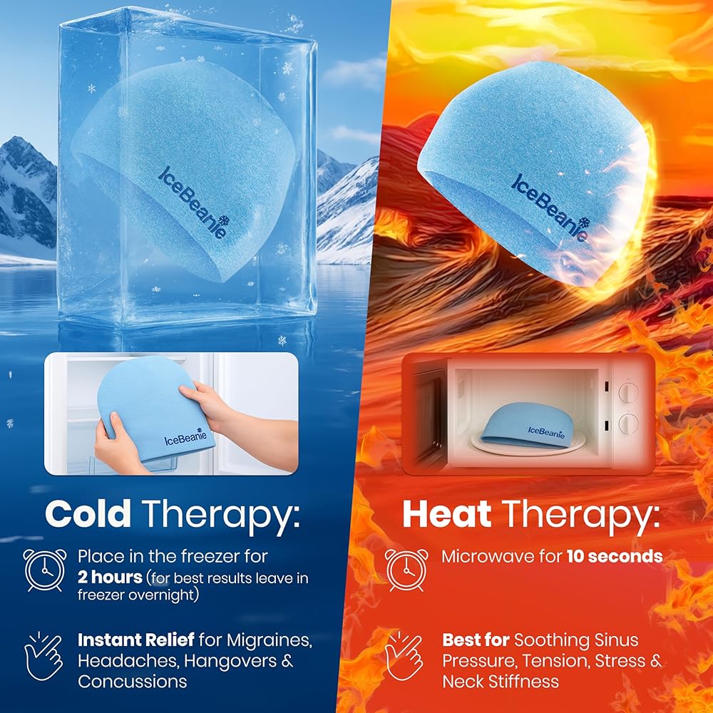 A natural dual therapy approach to pain relief - More than a simple cooling relief cap, the IceBeanie introduces an innovative, versatile approach to pain management. Effortlessly transitioning between soothing cold therapy and calming heat therapy, it presents a comprehensive, all-in-one solution to diverse forms of discomfort. Simply chill the IceBeanie in the freezer or warm it up as needed and step into the realm of immediate, holistic relief.