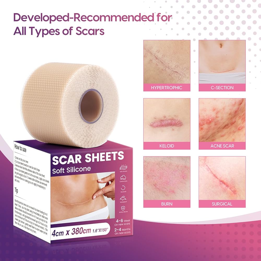 【High-quality Silicone Material】Our silicone scar sheets are made of high-quality medical-grade silicone material that is soft, comfortable, and non-irritating. They are an effective way to remove scars, especially keloid scars, and can be used on all types of scars, such as surgical, incision, burn, acne scars, and more.