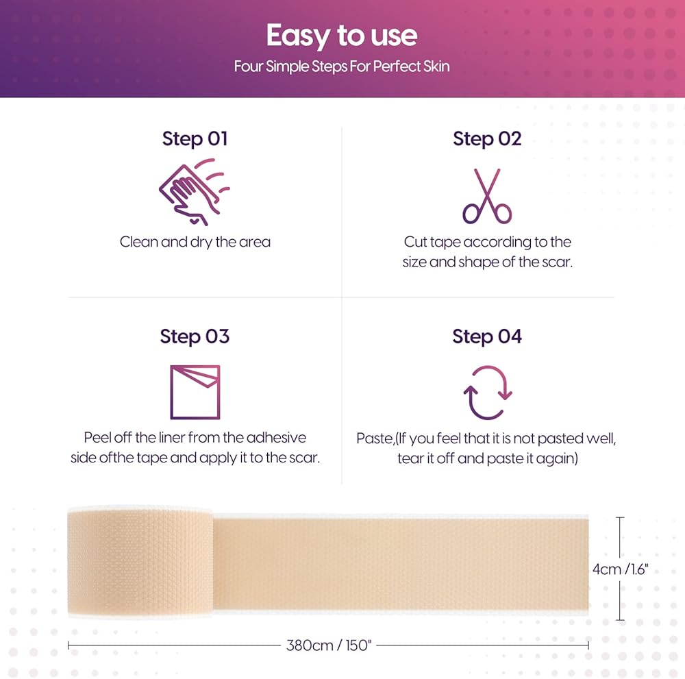 【Suitable for all kinds of people】The silicone scar tape is an effective solution for scars of all types - new or old, including those from acne, burns, surgery, and c-sections. This safe product is suitable for adults of all ages, and it works by improving the color, size, texture, and overall appearance of scars.