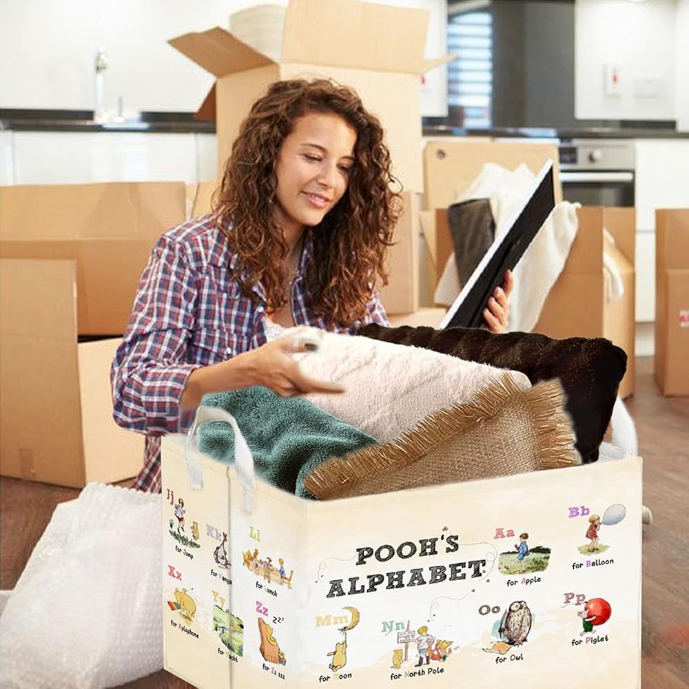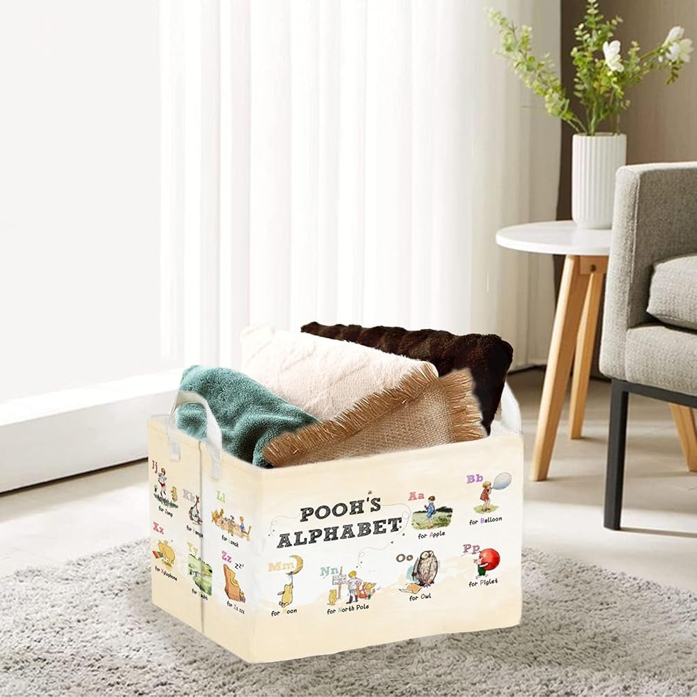 Winnie Nursery Large Hamper Canvas Laundry Basket Foldable With Waterproof Pe Coating, Foldable, for Kids, Boys and Girls, Bathroom and Bedroom Set, Clothes,Toys Bin