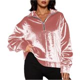 Velvet Sweatshirt for Women Casual Quarter Zip Long Sleeve Vintage Sweatshirt Trendy Dressy Velour Pullover Tops