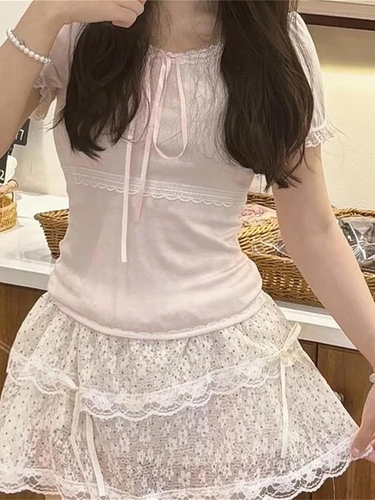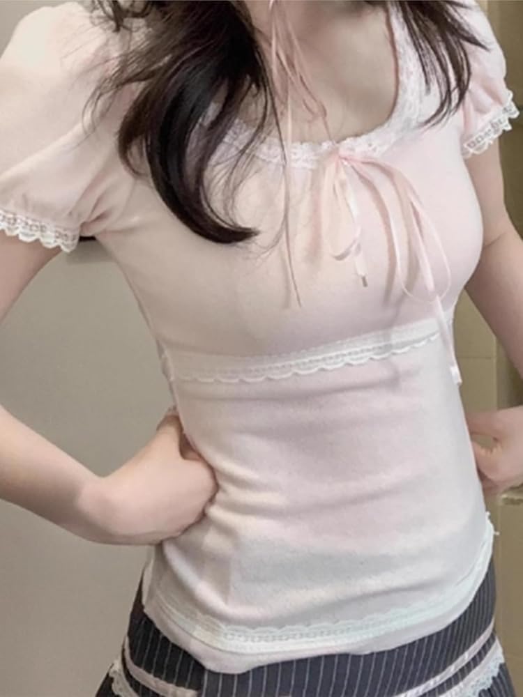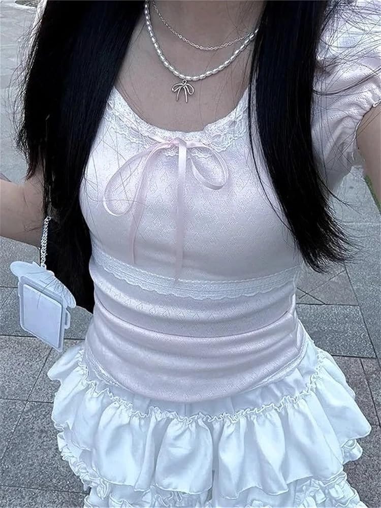 Made from high-quality materials, these coquette shirts exude vintage charm with a touch of fairy grunge style.coquette clothes coquette shirt coquette tops coquette baby tee cute lace tops y2k lace top lace trim top lace trim shirt bow top bow tops for women bow shirt