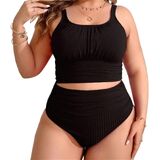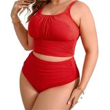 Make a stunning statement at the beach or pool with this gorgeous royal blue two-piece swimsuit. The textured fabric creates an elegant ribbed pattern throughout, while the ruched design provides flattering coverage and style. The crop-style top features comfortable shoulder straps and gathered fabric that creates a beautiful silhouette. The high-waisted bottom offers full coverage with a classic cut that pairs perfectly with the top. This plus-size swimwear is designed with both style and comfort in mind, available up to size 4XL. The stretchy, textured material hugs your curves in all the right places while maintaining its shape in and out of the water. Perfect for swimming, lounging by the pool, or enjoying a beach day, this swimsuit combines contemporary design with timeless appeal. The rich royal blue color remains vibrant and eye-catching, making this two-piece set a must-have addition to your swimwear collection.