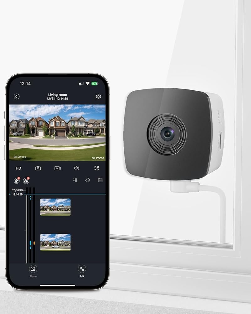 Smart AI Detection & Instant Alerts: AI tracks motion and distinguishes people from pets, minimizing false alarms. Receive real-time push notifications—with short video previews—on the Blurams app (subscription required for AI features).