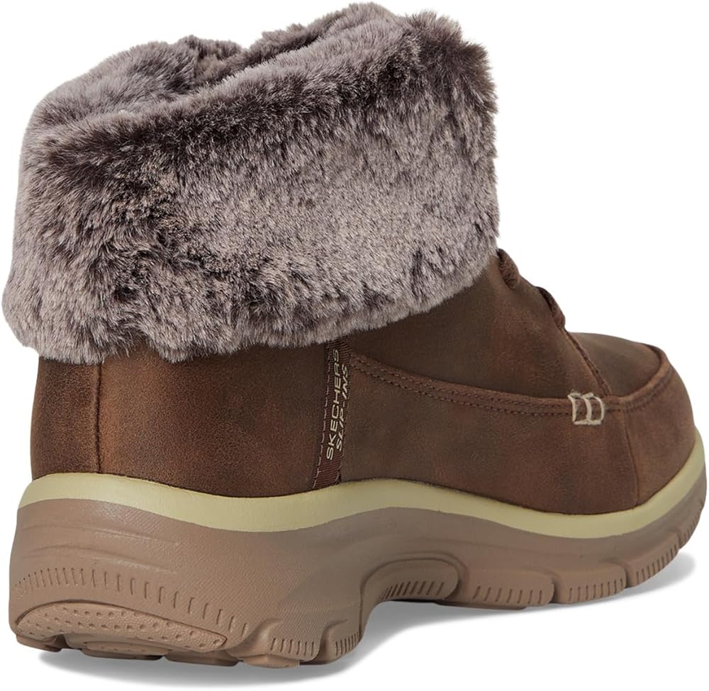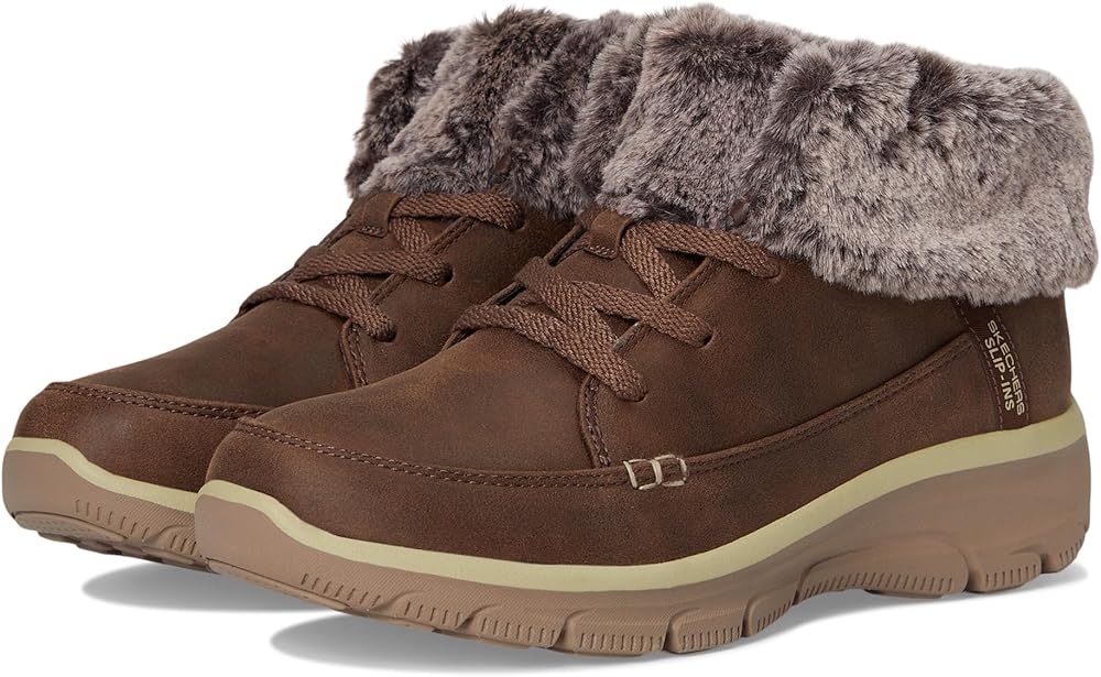 Simply step into the season with effortless cozy comfort wearing Skechers Hands Free Slip-ins® Relaxed Fit®: Easy Going - Chilly Standards. Designed with our exclusive Heel Pillow™, this hands-free fashion bootie features a 3M® Scotchgard® treated vegan leather upper with faux fur trim and lining and a cushioned Skechers Air-Cooled Memory Foam® insole.