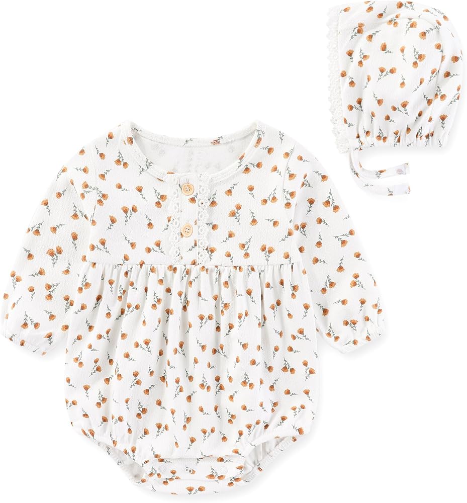 Design: These Baby Long Sleeve Bodysuits with hats, making your little one look more cute and elegant. Perfect for daily wear, family gathering, beach, photography, wedding and special occasion.