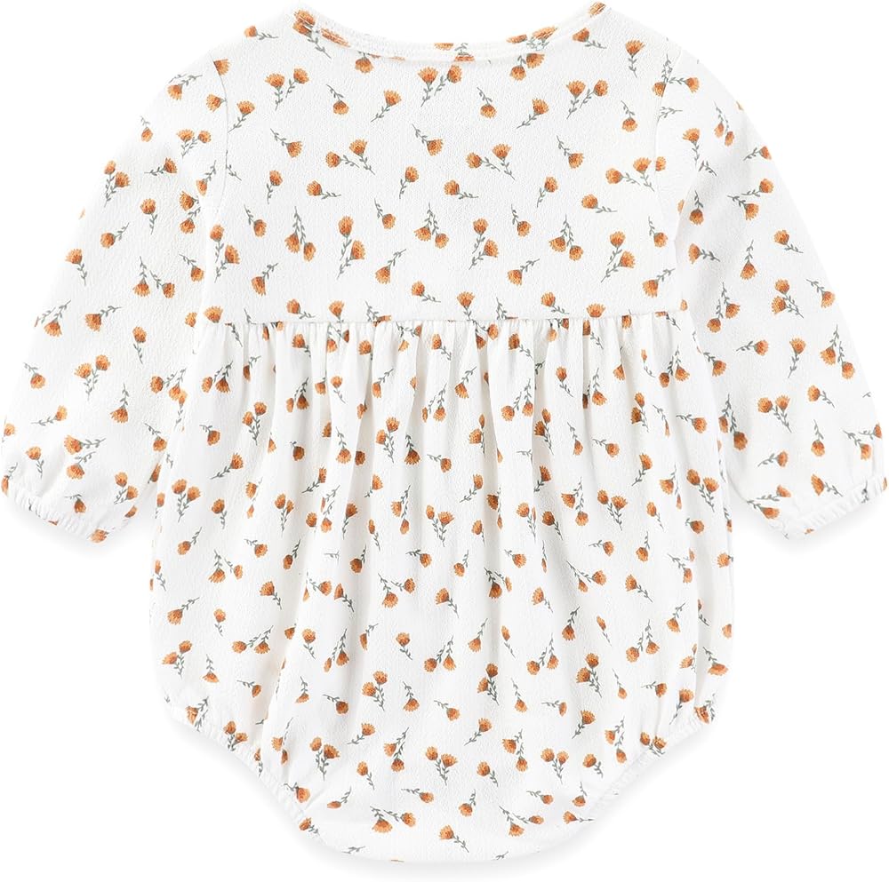 3 Snap Closure: These Baby Girl Bubble Rompers with 3 snap buttons for easy dressing and diapering, and it can keep the diaper in stay, which is suitable for babies to wear when sleeping and playing.