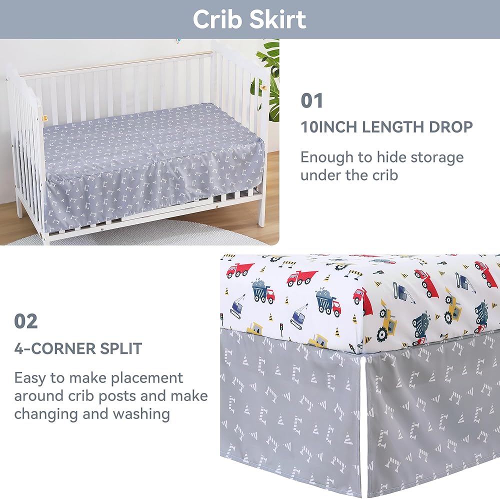 Complete Set: This 3-piece set includes a beautifully crafted baby quilt, a fitted baby sheet, and a matching bed skirt, offering a stylish and coordinated look for your nursery.