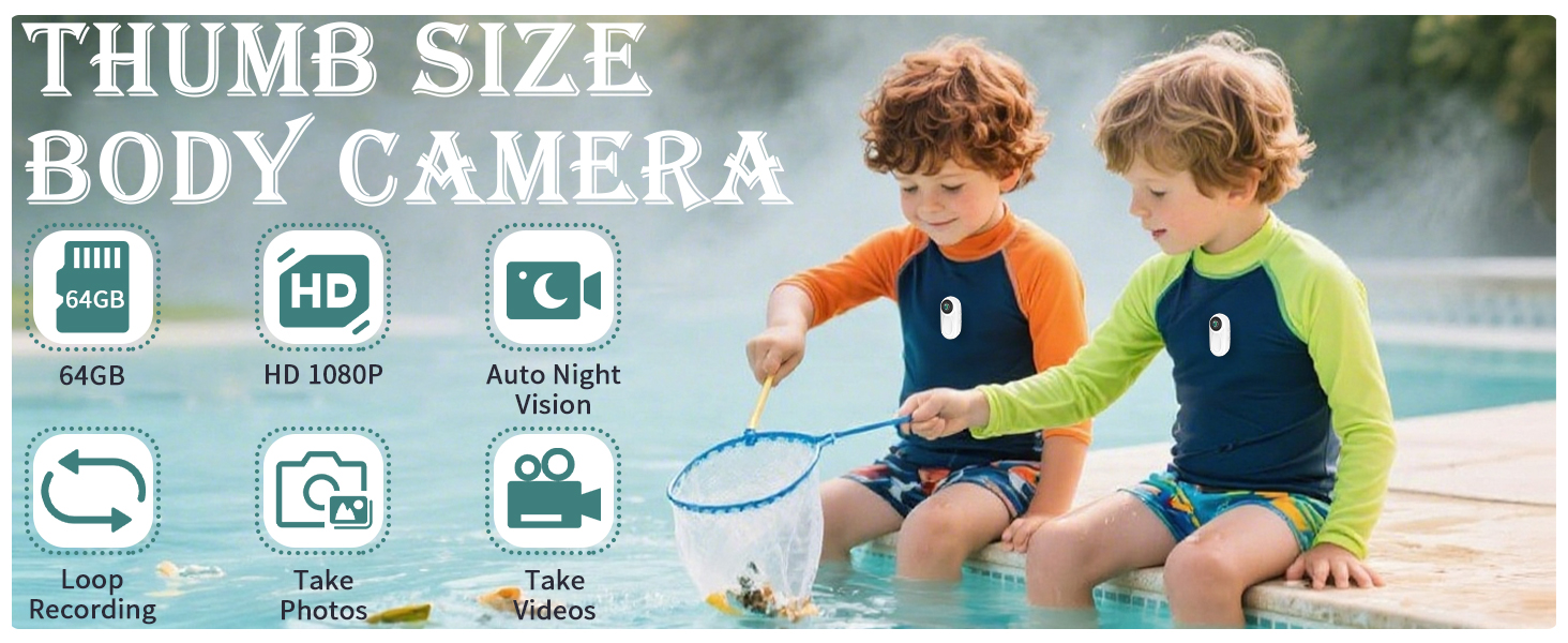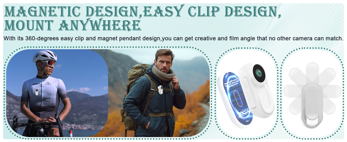 Compact and portable POV camera: This body camera is only the size of a thumb and weighs only 27g, making it perfect for carrying around. Whether you're mountain biking, traveling, or skiing, you can easily carry this chest camera to record beautiful moments.