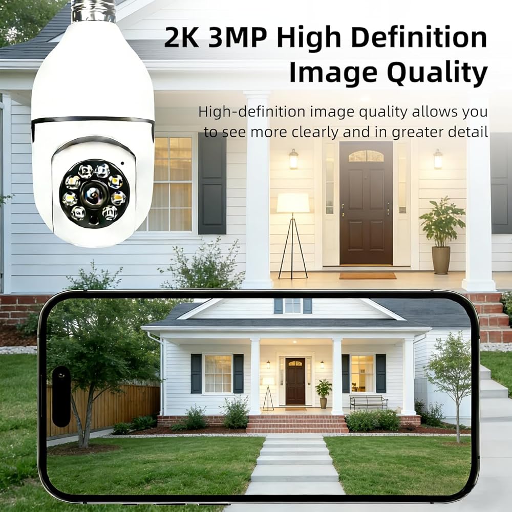 Light Bulb Security Camera -5G& 2.4GHz WiFi 2K 3MP Security Cameras Wireless Outdoor Motion Detection and 911 Alarm Monitoring,Open AI Enabled,US Local Cloud, Color Night Vision,
