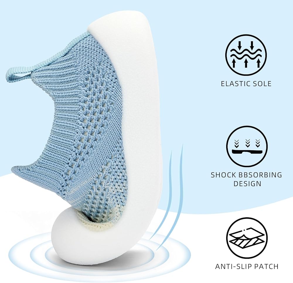 Easy On/Off:A stretchy collar and pull-on tab make these toddler sneakers easy to put on and take off—no fuss for parents or little ones. A secure, sock-like fit ensures the shoe stays in place while your baby moves freely.