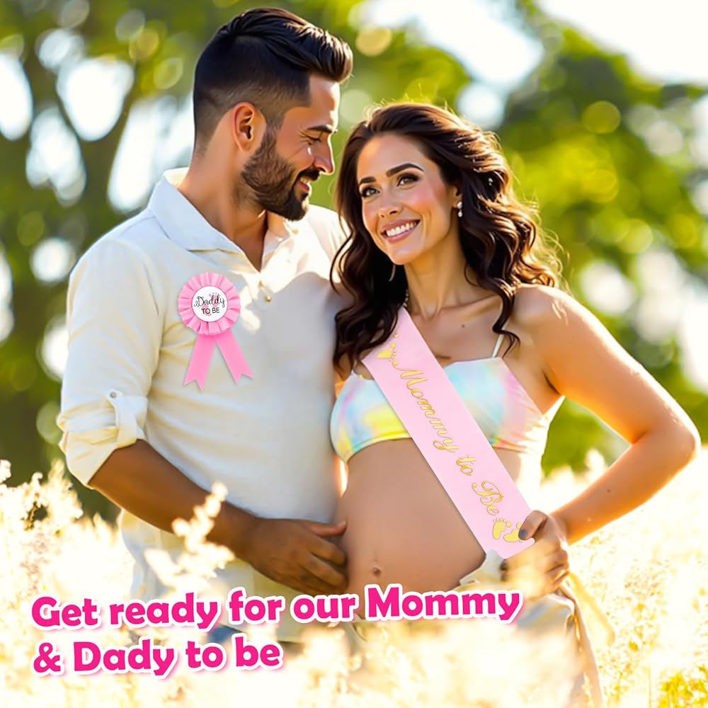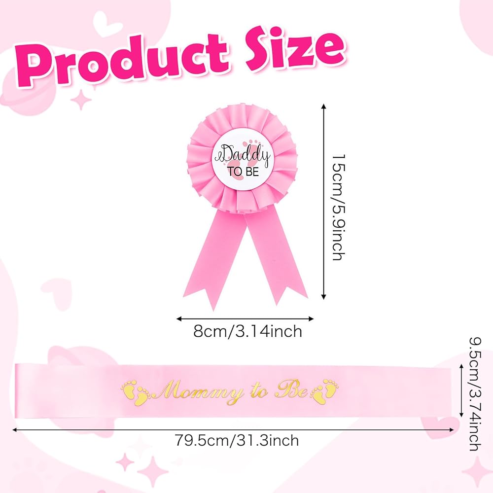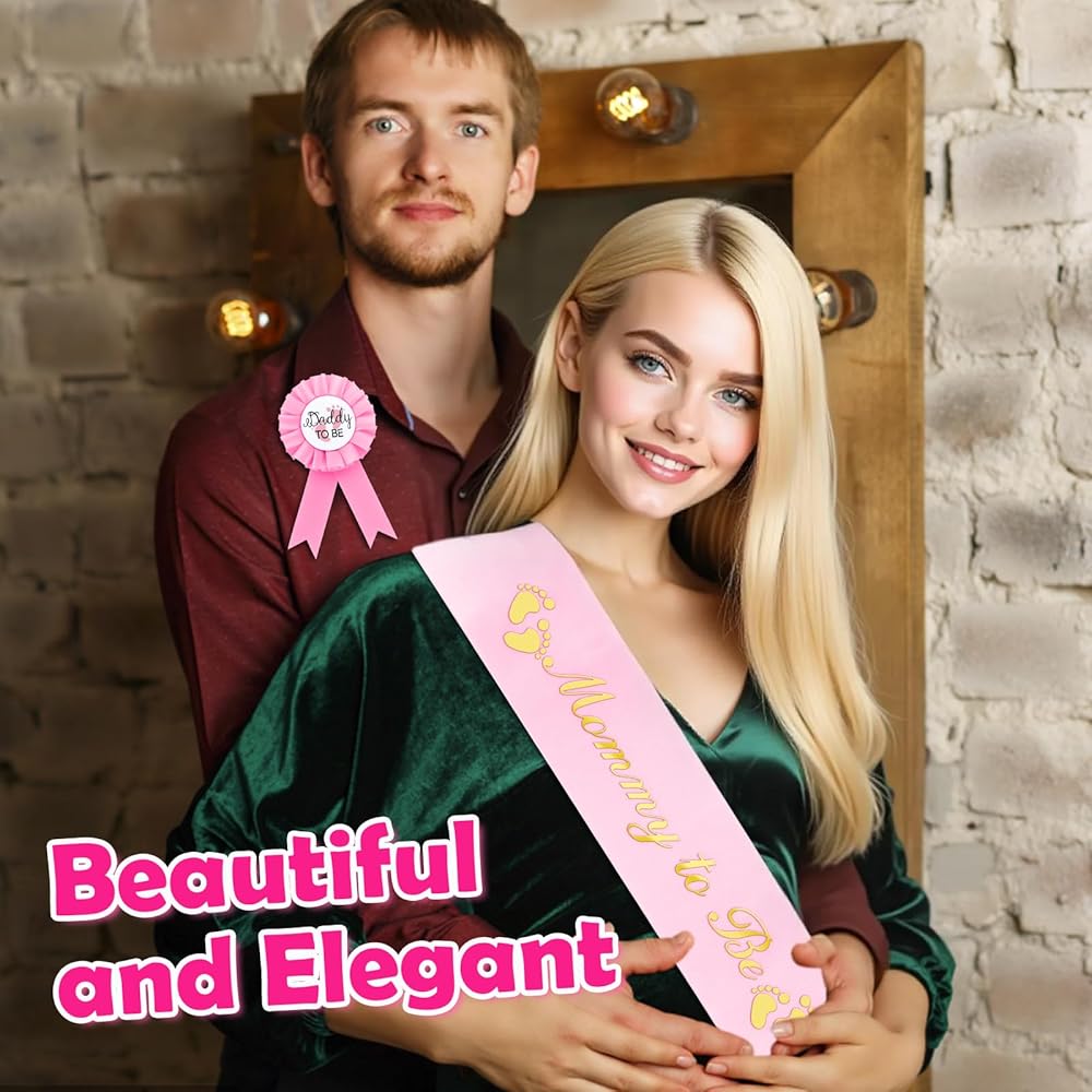 【Value Set】:Comes with 1 mom to be sash,1 "Daddy To Be" badge. With the lovely mommy to be sash for shower, you can take a fun and cute photo with your family and leave unforgettable memories