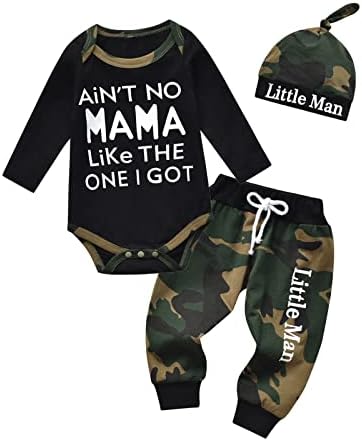 Newborn Baby Boy Clothes Long Sleeves Letter Print Romper Camouflage Long Pants Hat 3Pcs Outfits Set