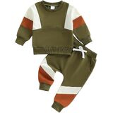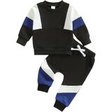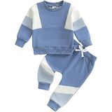 Fashion Design:Patchwork solid colored long sleeved round neck sweatshirt with one pockets, matching with solid colored pants, classic and fashionable. Elastic waist make it easier to put on and take off, convenient for baby's daily playing and moving