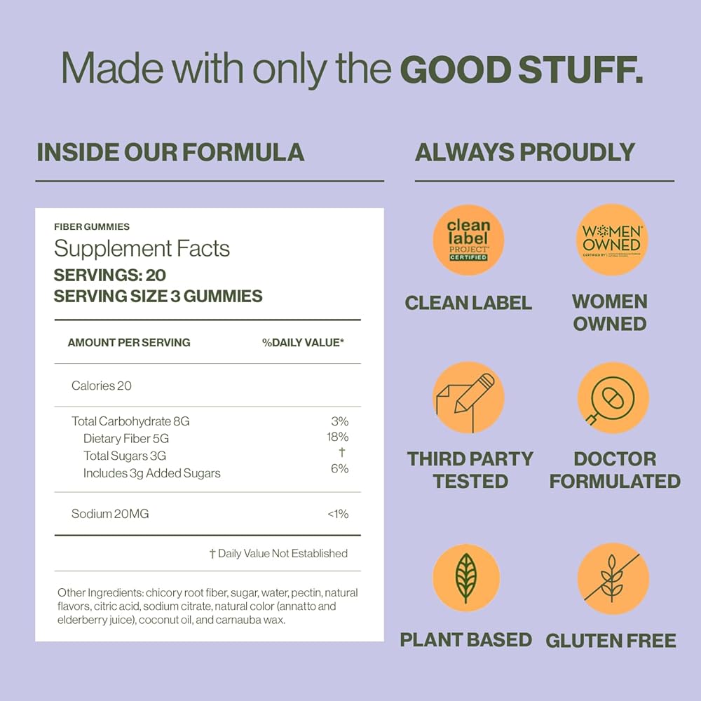 Get Enough Fiber? - This delicious gummy is prebiotic, plant-based soluble fiber that promotes bowel regularity and helps support digestion. Made with 5g of Chicory Root fiber