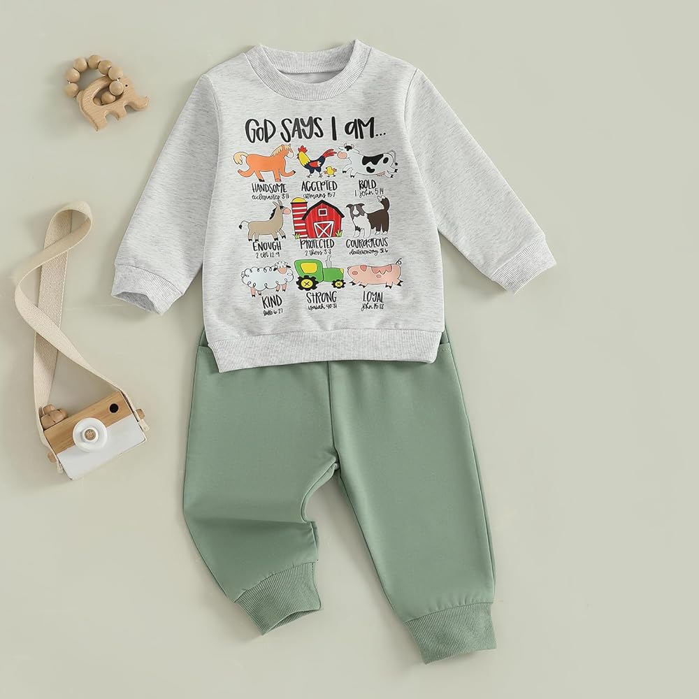 Infant Baby Boy Fall Outfit Funny Print Long Sleeve Sweatshirt Joggers Pants Set Toddler Warm Winter Clothes Size (cm) 70 Tops Length: 31 Bust: 52 Sleeve: 25 Shoulder: 21.5 Pants Length: 38 Waist: 36 Hip: 54 Advised Age: 0-6 Months 80 Tops Length: 33 Bust: 54 Sleeve: 27 Shoulder: 22.5 Pants Length: 41 Waist: 38 Hip: 56 Advised Age: 6-12 Months 90 Tops Length: 35 Bust: 56 Sleeve: 29 Shoulder: 23.5 Pants Length: 44 Waist: 40 Hip: 59 Advised Age: 12-18 Months 100 Tops Length: 37 Bust: 59 Sleeve: 31 Shoulder: 24.5 Pants Length: 48 Waist: 42 Hip: 62 Advised Age: 18-24 Months 110 Tops Length: 39 Bust: 62 Sleeve: 33 Shoulder: 25.5 Pants Length: 52 Waist: 44 Hip: 65 Advised Age: 2-3 Years Size (inch) 70 Tops Length: 12.2 Bust: 20.47 Sleeve: 9.84 Shoulder: 8.46 Pants Length: 14.96 Waist: 14.17 Hip: 21.26 Advised Age: 0-6 Months 80 Tops Length: 12.99 Bust: 21.26 Sleeve: 10.63 Shoulder: 8.86 Pants Length: 16.14 Waist: 14.96 Hip: 22.05 Advised Age: 6-12 Months 90 Tops Length: 13.78 Bust: 22.05 Sleeve: 11.42 Shoulder: 9.25 Pants Length: 17.32 Waist: 15.75 Hip: 23.23 Advised Age: 12-18 Months 100 Tops Length: 14.57 Bust: 23.23 Sleeve: 12.2 Shoulder: 9.65 Pants Length: 18.9 Waist: 16.54 Hip: 24.41 Advised Age: 18-24 Months 110 Tops Length: 15.35 Bust: 24.41 Sleeve: 12.99 Shoulder: 10.04 Pants Length: 20.47 Waist: 17.32 Hip: 25.59 Advised Age: 2-3 Years Specification: Advised Age: 0-6 Months, 6-12 Months, 12-18 Months, 18-24 Months, 2-3 Years, 3-4 Years Materials: 96% Cotton and 4% Elastane Gender: Boy Package Contents: 1 * Sweatshirt + 1 * Pants Note: 1. Please understand there may be a 1-2 cm deviation exist. 2. Due to the lighting and monitors, there is a slight difference between the picture and the real item. Promise: If the product has any quality problems, please relate with us, we will help you solve the problem as quickly as possible.