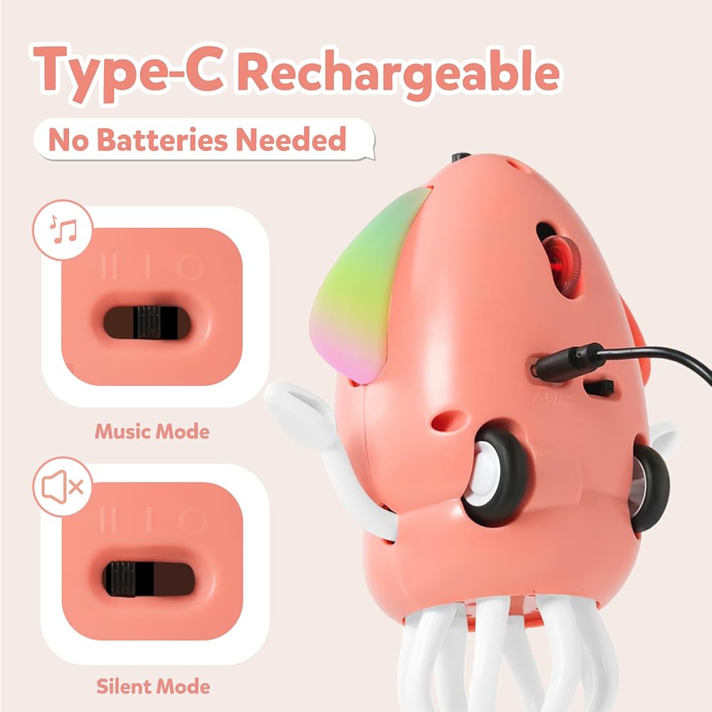 RECHARGEABLE & AUTO OBSTACLE: Includes a quiet mode (music off) and is Type-C rechargeable. This electric crawling octopus toy has a built-in intelligent sensor to detect and bypass obstacles, helping it stay safe and keep the fun going. It automatically turns and changes direction to attract children's attention and encourage them to crawl along