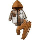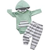 Newborn infant Baby Boy Long Sleeve Clothes Set Toddler Boys Hooded Romper Top and Pants 2PCS Outfit