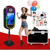 Oval Magic Mirror Photobooth Machine with Flight Case to Record Vital Moments, 21.5inch Touch Screen Built-in Mini PC for Wedding Party (Black, Photo Booth)