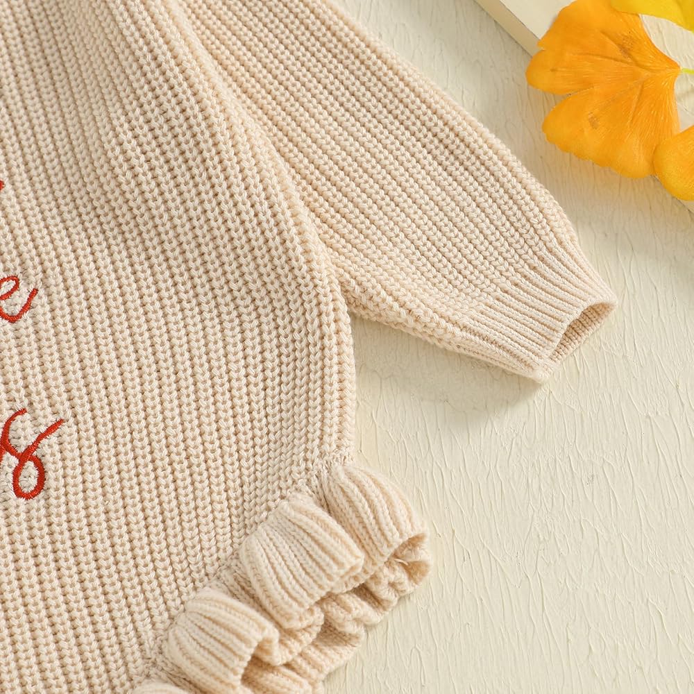 PACKAGE: 1 * Infant baby girl sweater romper; The infant girls thanksgiving clothes 0-3 month size is suitable for babies as young as 3 months old. As it is a knitted with elastic style , it can also be worn by babies over 3 months old