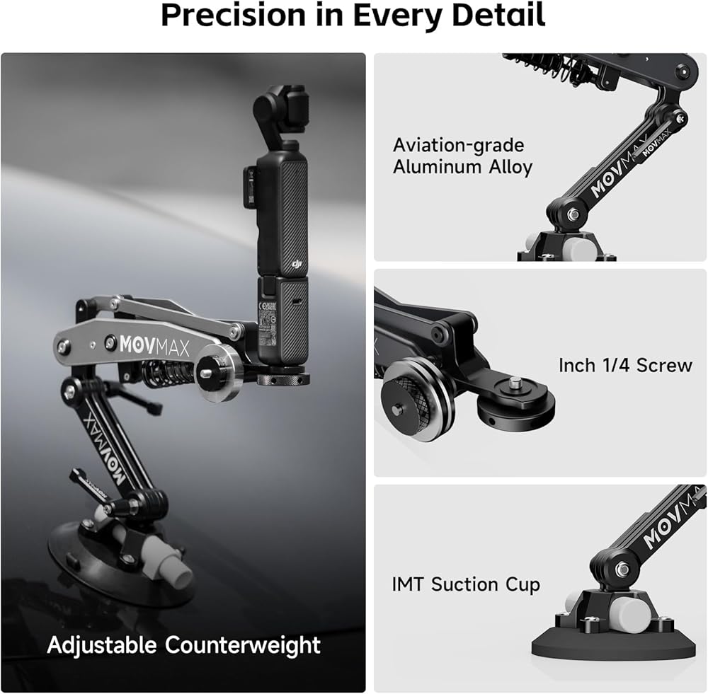 MOVMAX Blade Arm for DJI osmo Pocket 3 Suction Cup car Mount,Stabilizer for Pocket 3, Insta 360, and GoPro Hero Cameras,1/4 Universal Locking Screw,Suitable for Content Creators Vloger YouTube