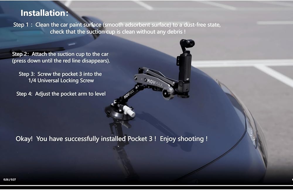 ✅【Quick Fixing and Shooting】It is highly portable and can be quickly disassembled and reassembled. It features a quick release mounting system.It can be installed on various flat and smooth surfaces, such as car doors, the front hood and rear of the vehicle, and other surfaces like glass, walls, tiles, painted wood, etc., using suction cups.
