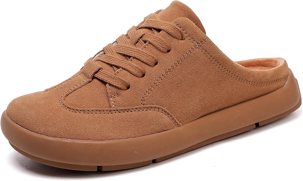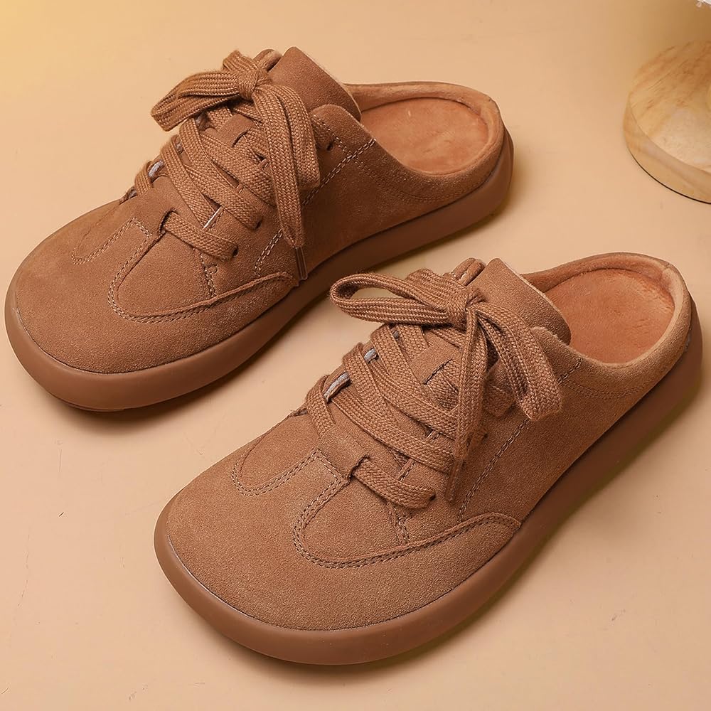 Suede Leather: Womens mule slippers crafted from suede leather offer a soft and luxurious touch, perfect for cozy indoor relaxation or casual outdoor strolls.