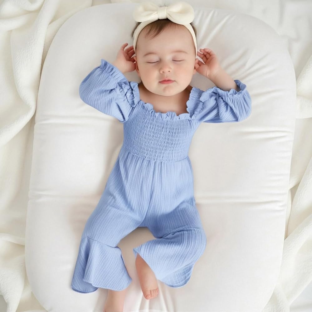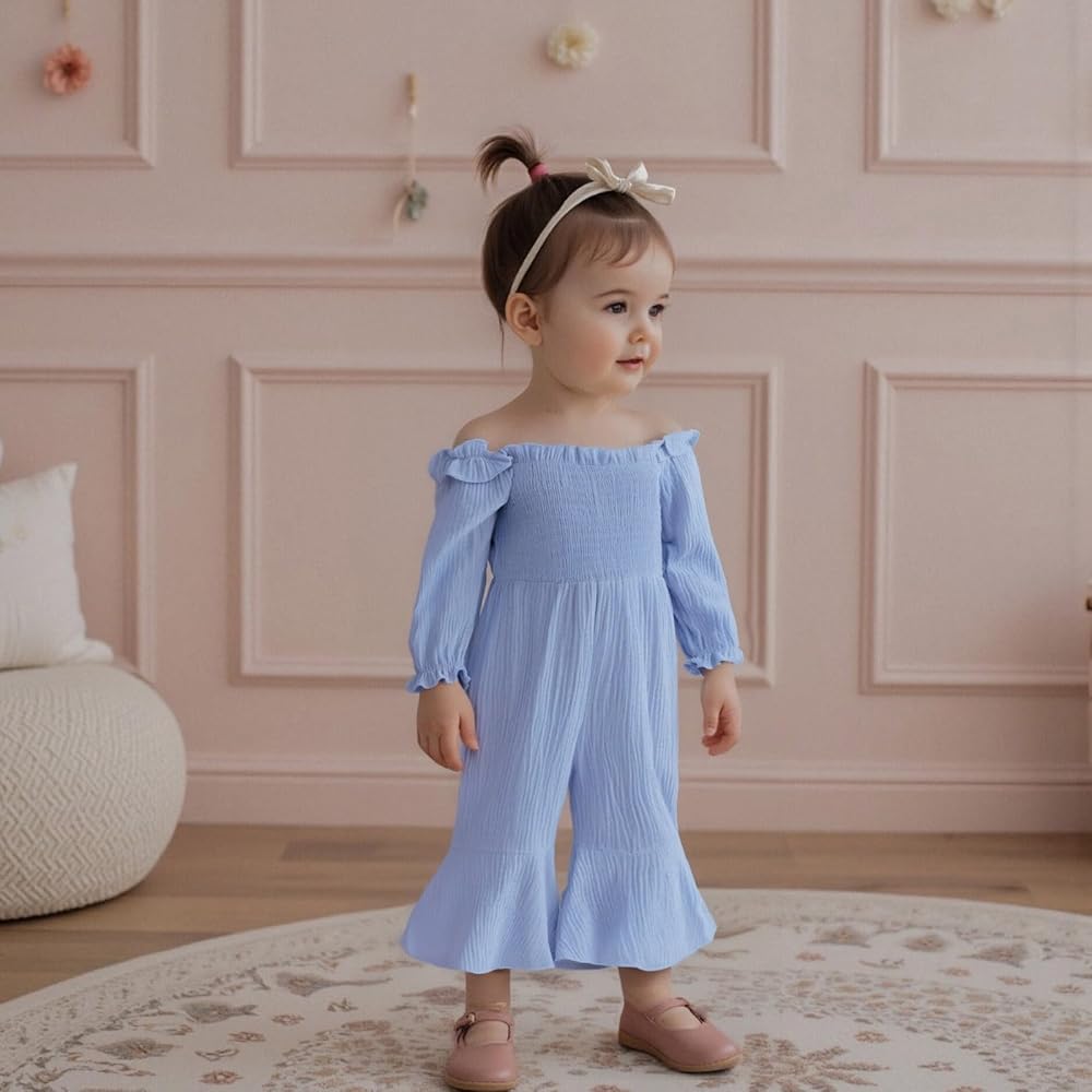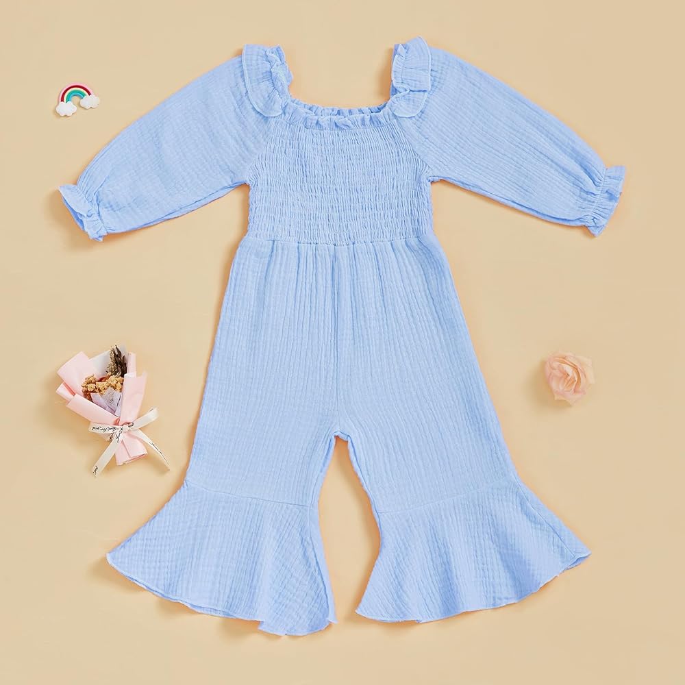Feature: toddler girl linen jumpsuit, baby bell bottoms, baby girl bell bottom outfit, bubble romper baby girl, winter baby girl clothes, baby girl winter clothes, toddler girls bell bottom outfits long sleeve, bell bottom jumpsuit girls