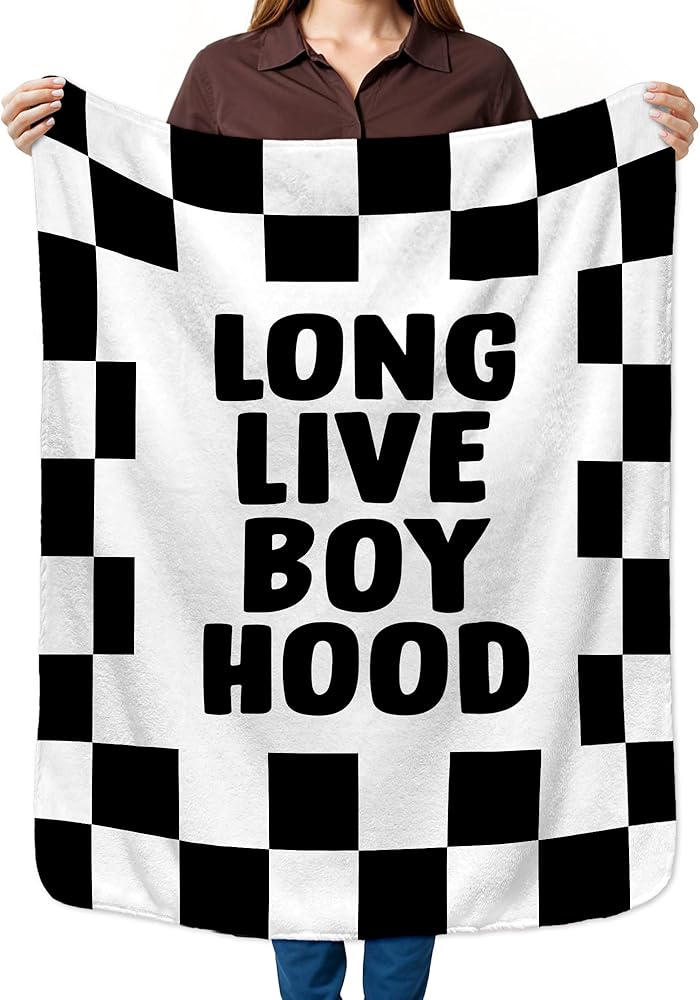HIWX Black and White Checkered Kids Blanket, Long Live Boyhood Nursery Blankets, Trendy Retro Checkered Throw Blanket for Kids Boys Room Bedroom Home Living Room Office Couch Bed Decor, 40x30 Inches