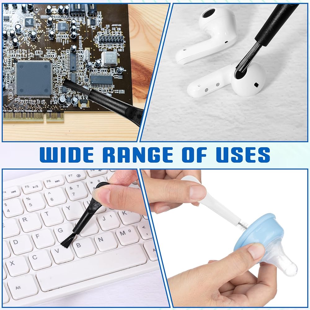 Constructed with ABS handles and flexible nylon bristles, these cleaning brushes offer wear resistance and thermal stability. The soft yet sturdy bristles prevent scratching while effectively clearing gunk from phone holes, car vents, and other small crevices.