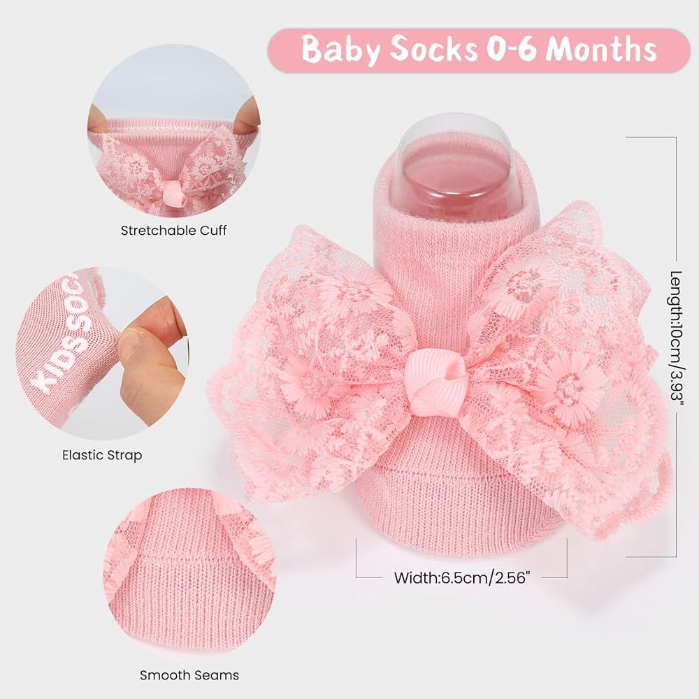 Ultra-Soft Cotton Bliss for Tiny Toes- Wrap delicate feet in cloud-like comfort with our pure cotton baby socks 0-6 months, designed for newborn baby girls. These feather-light infant socks (0-3 months,3-6 months) feature non-slip grips to support early wiggles, making them essential baby girl items for hospital trips, stroller walks, or cozy nursery days. Whether pairing with baby girl outfits or solo for skin-friendly breathability, they're the perfect new born socks for sensitive skin.