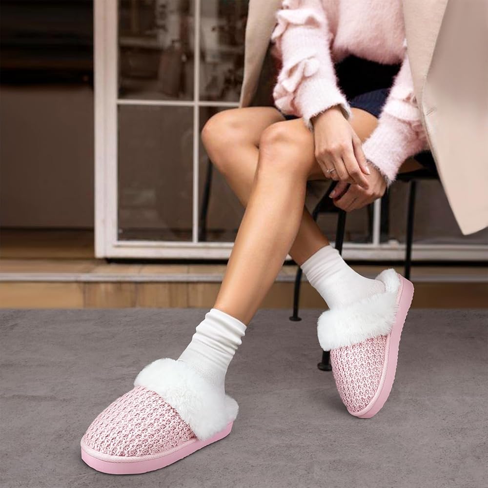 Warm and Comfy: Women's platform slippers are lined with soft, moisture-wicking faux fur and breathable knit to keep feet dry and comfortable. The plush collar adds charm, making them perfect for warmth and style during cold winters.