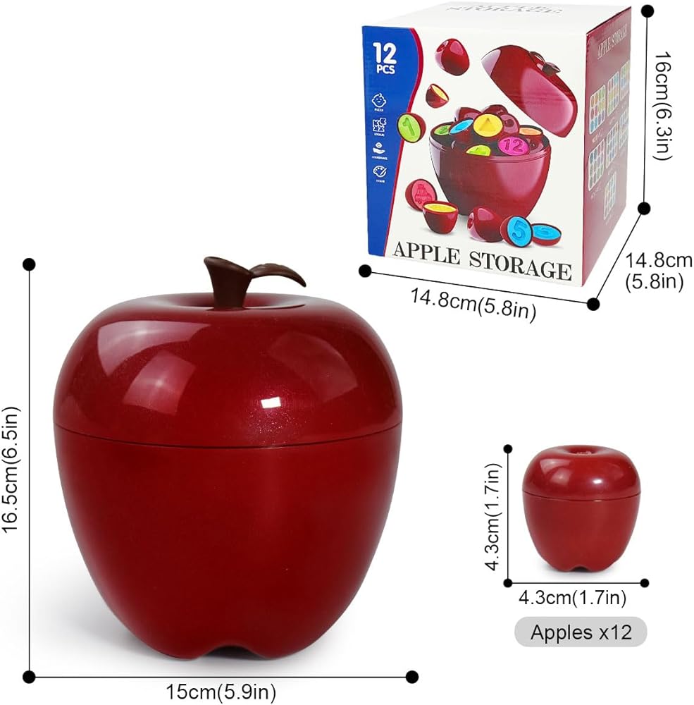Preschool Learning Activities: It is an excellent tool for kindergarten learning activities. It crafted from strong ABS materials, perfect size encourages your little one to practice grasp ability. All apples are packed in a big apple shaped box, which is convenient to store and carry.