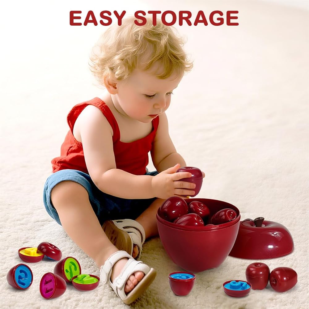 Matching Games for Toddlers: Our matching game is an upgraded version of the classic egg matching game, now with a fun apple-shaped design! The set includes 12 colorful apple toys, it's perfect for kids aged 3 to 6 to enjoy daily fun while learning shapes and numbers.