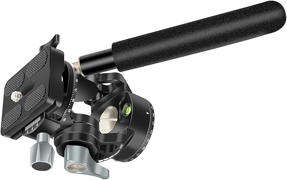Double Panoramic Tripod Fluid Head Small Pan Tilt Head Quick Release Plate and Handle for DSLR and Small Video Cameras
