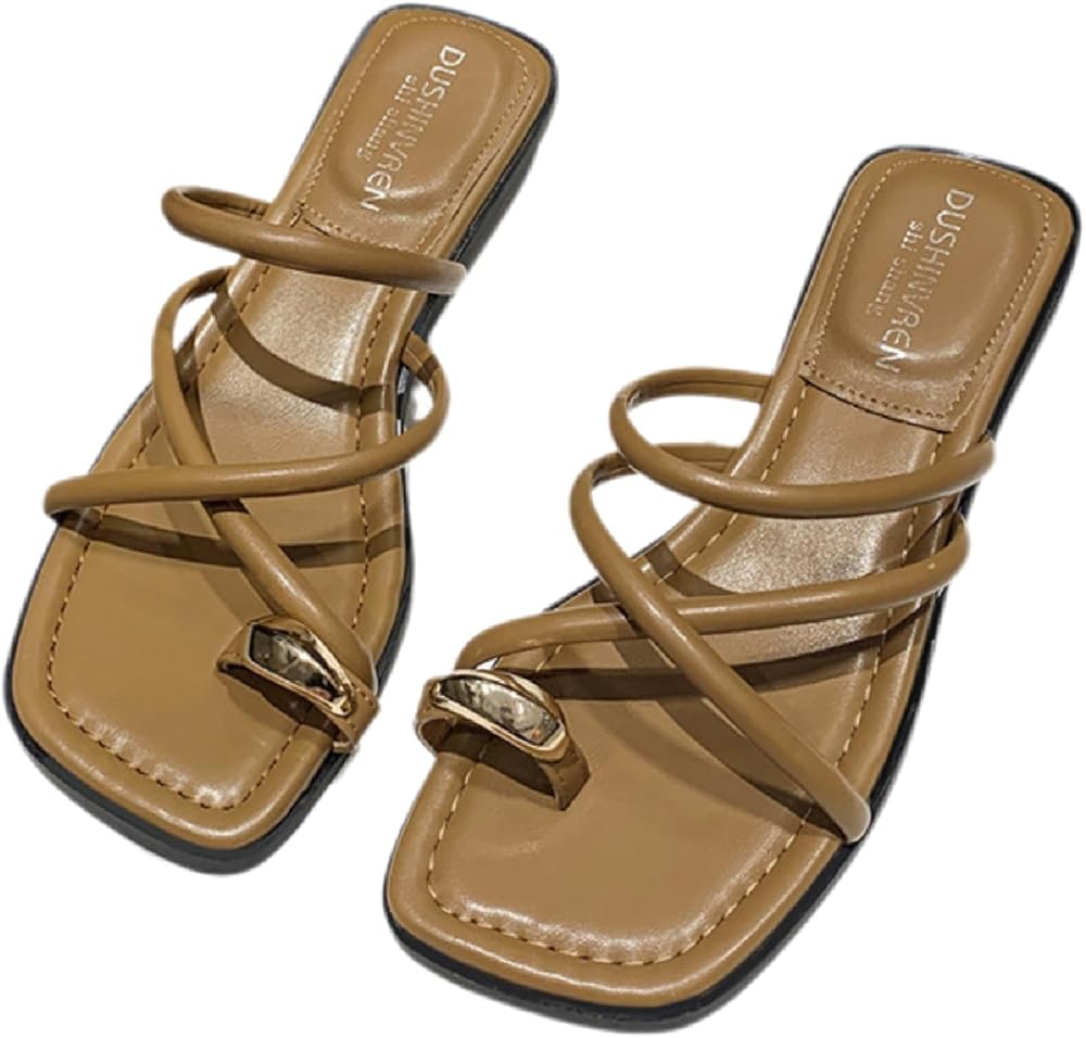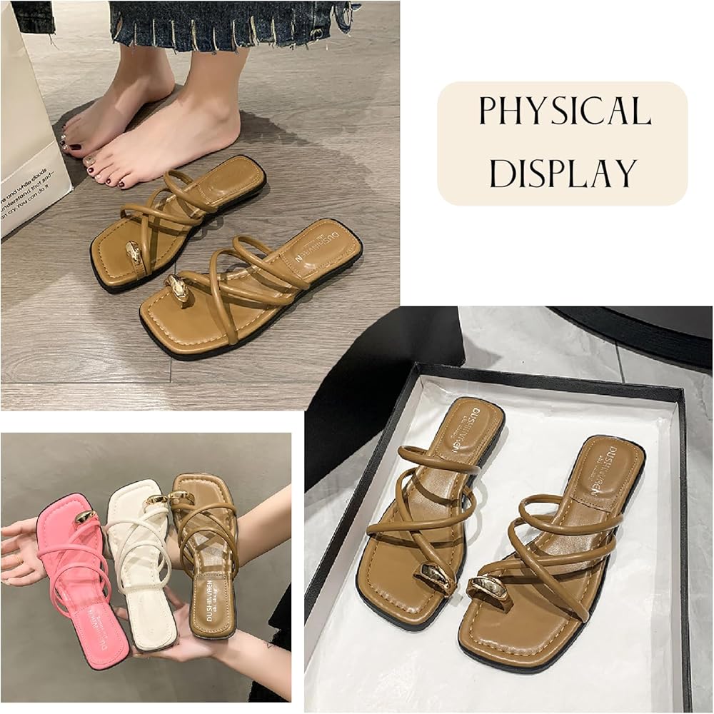 【Fashion Style】: The women's slippers adopt square head open toe, which fits the comfort of the foot shape and can better relax your toes. The strap-on upper is matched with the metal buckle toe ring design, which is full of fashion sense. The insole adopts exquisite sewing technology, which is firm and durable. The one-step toe ring design is easy to put on and take off, fashionable and convenient, personalized and practical.